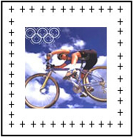 圖1 正面的圖,外黑框為打印布,+字符為標識符,彩色圖為需要打印的圖片