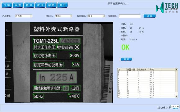 本系統用于電子秤出廠前校驗過程中顯示重量數字的讀取及發送功能,系統采用進口工業相機,可以快速獲取產品圖像,通過圖像識別、分析和計算,給出電子秤顯示的重量數值,也可根據誤差范圍進行判斷并輸出OK/NG信號,以便于設備執行下一步操作。