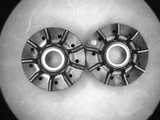 客戶為多家水泵制造商生產葉輪,其現場同時生產的有幾十個型號,在工藝環節中涉及多個型號共用設備的情況。多個型號的葉輪的外觀、尺寸非常接近,極易混雜,如圖1所示的就是兩種不同型號的葉輪,外觀非常接近。