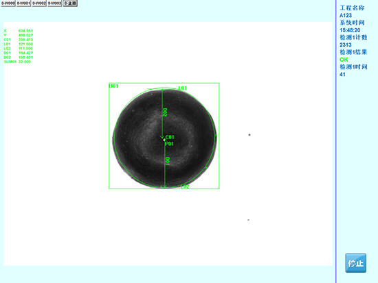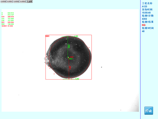 本公司基于機(jī)器視覺圖像處理技術(shù)研發(fā)在藥粒檢測過程中,需進(jìn)行藥粒上白點(diǎn)、藥粒圓不圓、藥粒的粘連、藥粒的色澤正確等功能,檢測完成后輸出OK、NG信號,在排廢位進(jìn)行剔除動(dòng)作。本系統(tǒng)將通過快速獲取在線對藥粒的圖像,通過圖像識(shí)別、分析或計(jì)算獲取藥粒特征信息,來判斷是否符合要求,并輸出控制信號。系統(tǒng)主要模塊有:觸發(fā)定位模塊,圖像處理模塊、控制模塊。根據(jù)用戶需求,樣品移動(dòng)到檢測位時(shí)觸發(fā)相機(jī)、視覺系統(tǒng)輸出檢測信號,從而完成檢測功能。