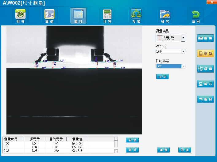 如圖所示,視覺系統自動對檢測位置進行提取并測量最高點與基準面的距離,在閾值范圍內判定位合格品,超出閾值范圍則判定為不良品并輸出不合格信號。