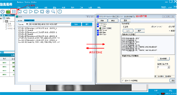 此功能是MVS增加的一個通訊驗證功能,主要用于項目交付前期配合客戶快速驗證控制軟件通訊是否正常,輸出的數據格式是否可以正常解析,便于客戶驗證控制程序的通訊問題。參數設置界面如下圖所示:左邊為通訊驗證窗口,右邊為通訊客戶端。