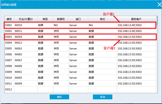 MVS做服務器與多個客戶端通訊設置,在結果輸出配置窗口可選擇指定需要通訊的客戶端,設置界面如下圖所示: