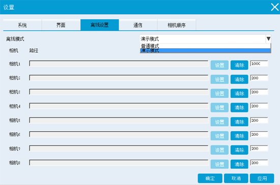 離線檢測有兩種模式:①普通模式、②演示模式,參數設置界面如下所示: