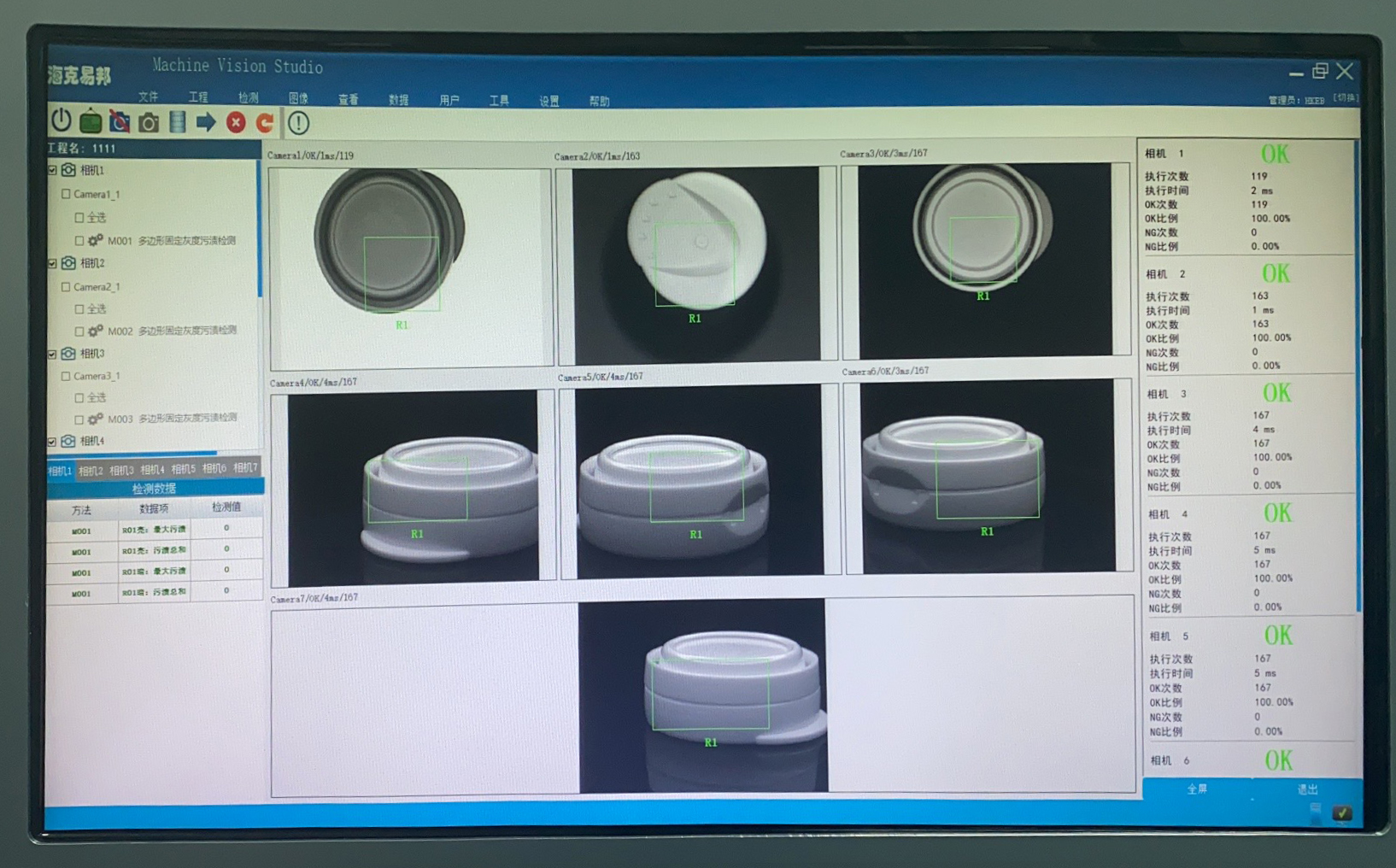 2.速度快、效率高、成本低,機器視覺檢測數量能達到250個/min,提高了生產效率,節約了后面的檢測人員的人力成本;
