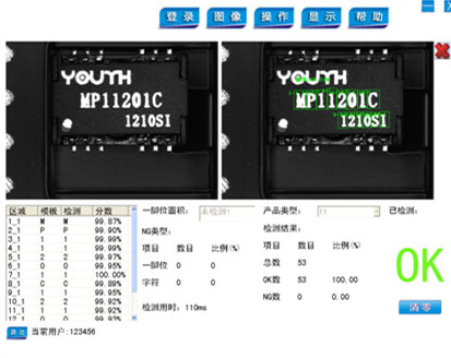 統用于產品貼碼字符的有無、對錯識別功能,系統采用進口工業相機,可以快速獲取產品圖像,通過圖像識別、分析和計算,給出產品印字有無、對錯、正反,并輸出相應檢測合格/不合格信號,以便于設備對放反品的處理。