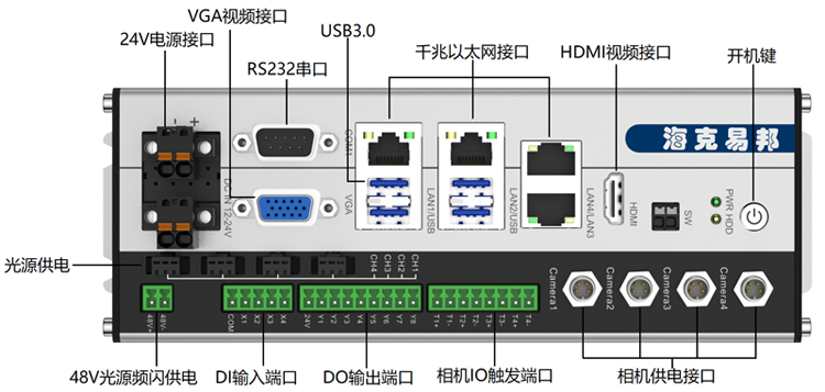 該系統采用視覺控制器HK-V6500N,將圖像處理與光源相機控制融為一體,而實現視覺處理與光源相機控制有效融合,節約成本;同時也為用戶提供良好的視覺圖像采集解決方案。